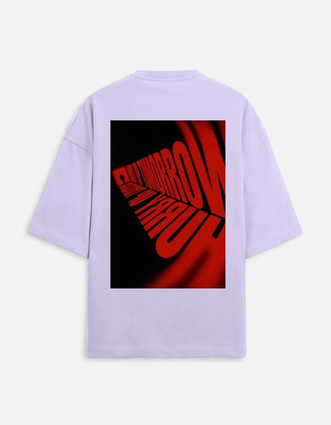 Tomorrow Hurts Oversized Tee, a statement piece for the bold and introspective. Set on a soft lilac canvas, this design features a striking red-and-black warped typography that reads “TOMORROW HURTS”, pulling you into a tunnel of existential heat and cinematic mystery.