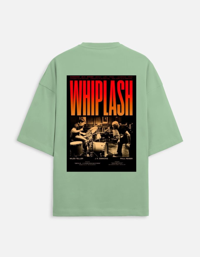 Whiplash Oversized Tee Crafted from premium, breathable cotton in a soothing mint green, this tee features a striking print of the iconic Whiplash movie poster — a cinematic tribute to passion, grit, and perfection.